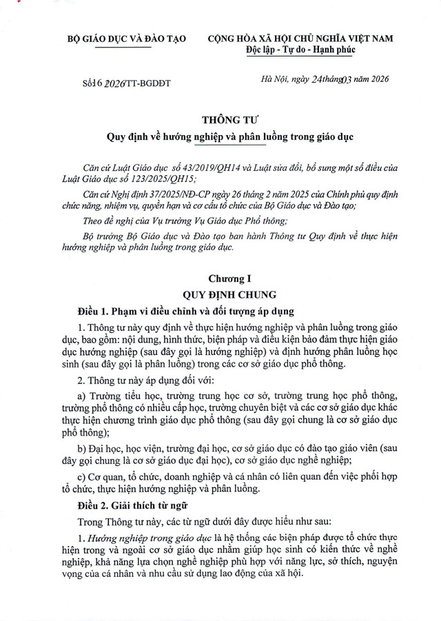 Ngày 22/04/2026, Bộ Giáo dục và Đào tạo đã chính thức ban hành Thông tư 16/2026/TT-BGDĐT. Đây là văn bản pháp quy quan trọng nhằm tăng cường hiệu quả công tác giáo dục hướng nghiệp và định hướng phân luồng học sinh trong hệ thống giáo dục quốc dân.
