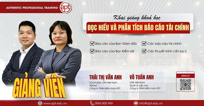- Giảng viên:Cô Thái Thị Vân Anh, FCCA (UK) , CPA (Việt Nam) - Partner Công ty TNHH Kiểm toán KTC; Thầy Võ Tuấn Anh, CPA Việt Nam - Trưởng bộ phận tư vấn - Công ty TNHH Kiểm toán KTC